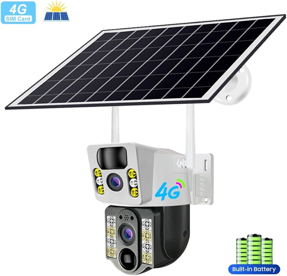 Caméra PTZ solaire 4MP V380 Surveillance extérieure autonome et fiable. Disponible en versions Wi‑Fi ou 4G selon vos besoins. Caractéristiques Techniques Résolution: 4 MP (1080‑1440p) Panneau solaire: 8 W + batterie intégrée Rotation PTZ: 355° panoramique + 90° inclinaison Détection PIR: Jusqu’à 12 m Étanchéité: IP66 Pourquoi choisir ce modèle ? Autonomie solaire 24/7 Rotation PTZ complète Sécurité renforcée via vision nocturne ou…